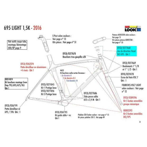 Ce jeu de direction Look Head Fit 3 est destiné aux cadres Look 695 et permet de changer votre jeu de direction usagé.