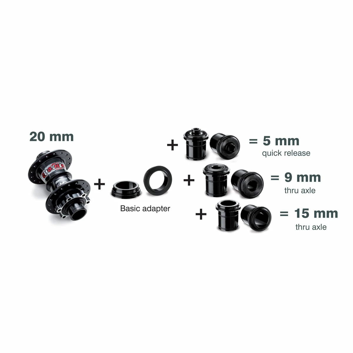 Jeu d’adaptateurs pour le moyeu EVO 9 VR ! Pour la conversion du moyeu EVO 9, vous avez toujours besoin de cet adaptateur de base pour chaque taille d’adaptateur.